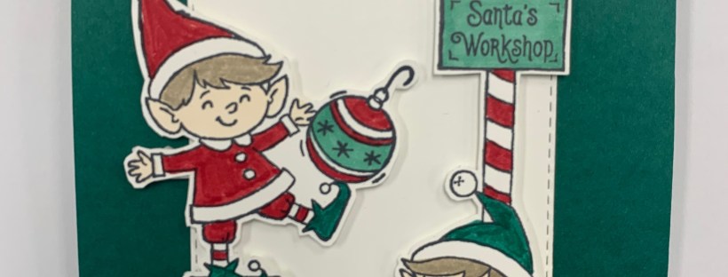 There is ONE WEEK until Christmas and the elves up at the North Pole are working hard!! To celebrate this very merry holiday only seven days away, I thought I’d share this easy and fun card made with the Elfie Cling Stamp Set!