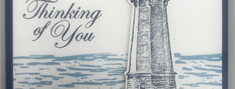 The lighthouse is from the Sailing Home Bundle. I used my die to cut out the lighthouse and stamped it in Night of Navy.