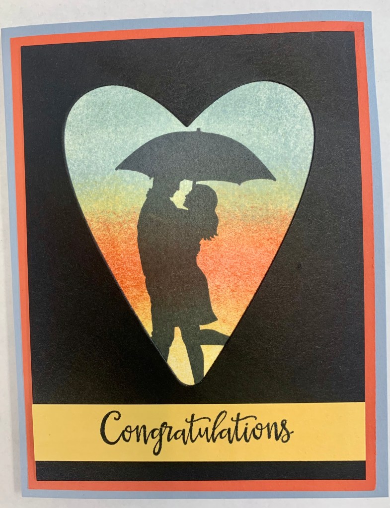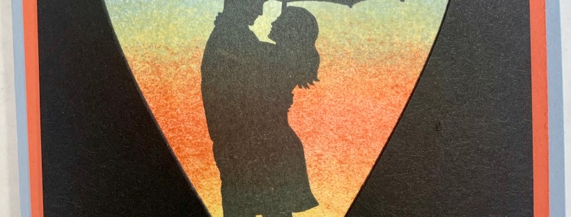 Next, I stamped the cute couple silhouette from the Silhouette Scenes Stamp Set in Memento Black Ink on a 4″ x 5″ piece of Whisper White Cardstock.