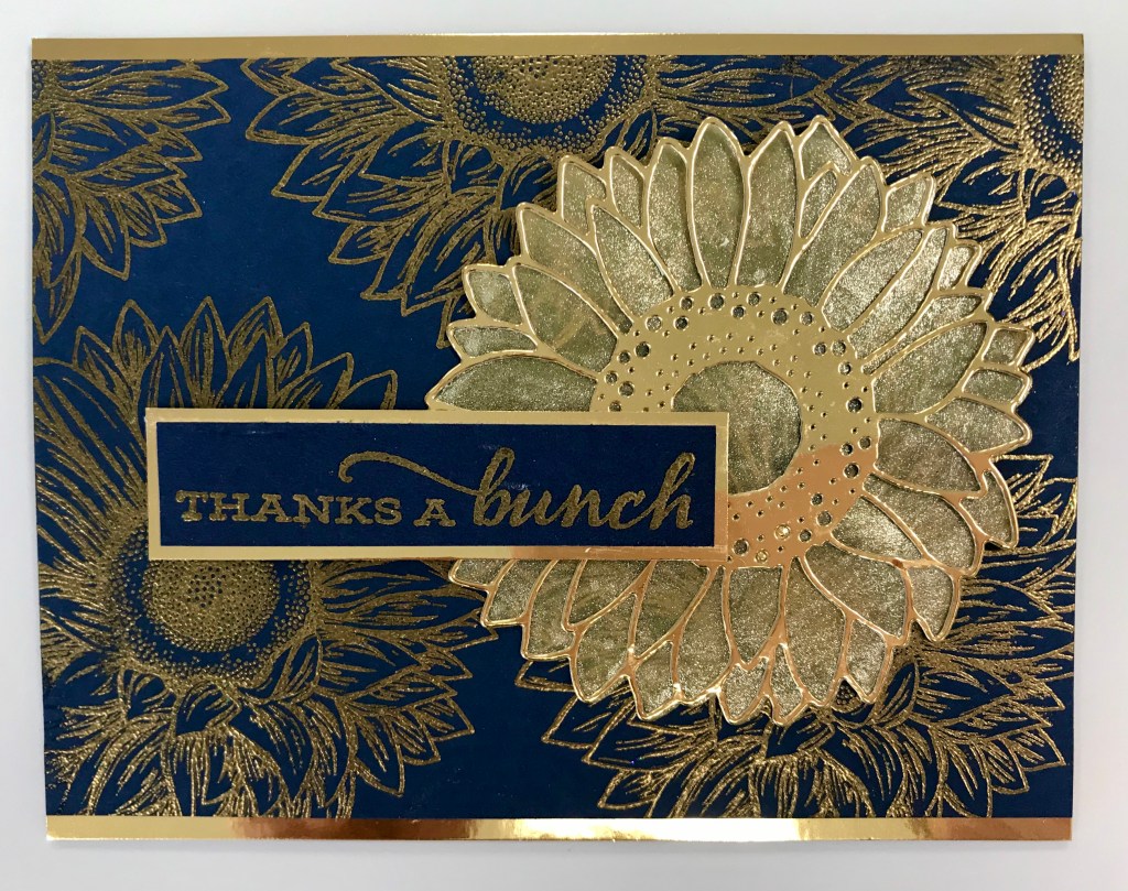 Such a visually stunning card! Check out my Navy and Gold Sunflower Gold Supply List!