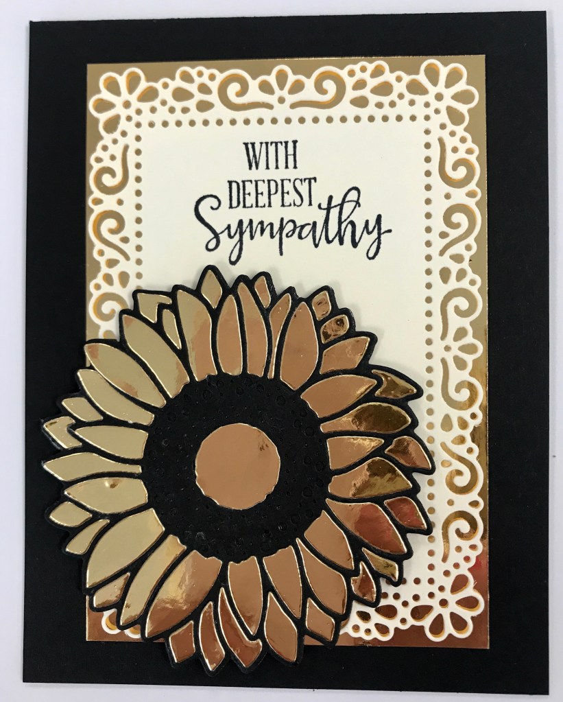 This stunning card features the Celebrate Sunflowers Bundle in black with lots of gold accents!