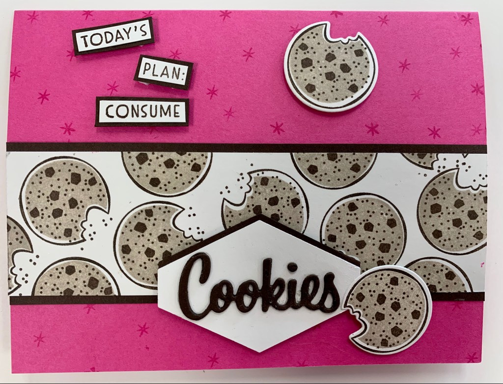I matted the cookie strip on Early Espresso Cardstock. I stamped two extra cookies and cut them out to embellish the front of the card.