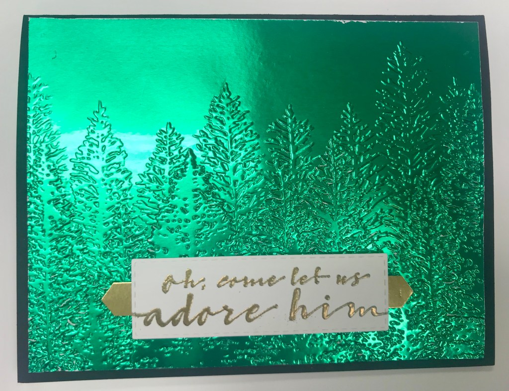 I love how the the Evergreen Tree Embossing Folder looks with foil sheets!