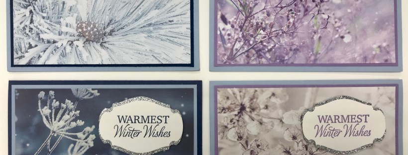 The paper features Seaside Spray, Night of Navy, Pretty Peacock, Highland Heather and Purple Posy. I mixed and matched this design with different sheets of DSP for a variety of pretty cards.