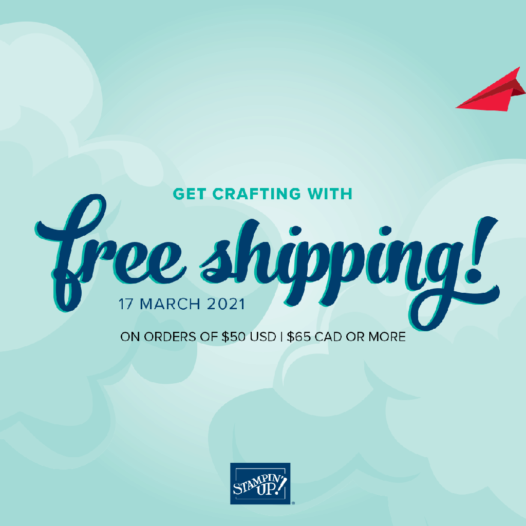ONE DAY ONLY: Wednesday, March 17: Free shipping on Stampin’ Up orders of $50 or more!
