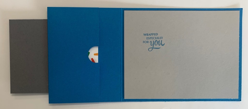 I cut a 5.25″ x 4″ piece of Basic Gray Cardstock for the inside of the gift card holder. Write a note or stamp a greeting inside!
