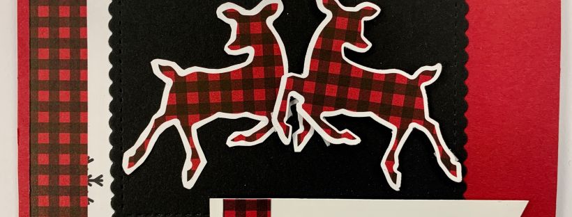 Next, I used my Deer Builder punch to punch a gingham deer from the snowflake DSP (so easy!). I fussy-cut a second deer facing in the opposite direction and adhered both deer to a piece of Basic Black Cardstock.
