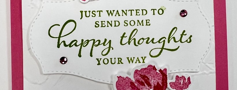 I stamped the flowers from the Art Gallery Bundle in Melon Mambo and Magenta Madness on Whisper White Cardstock. I used the corresponding die to cut it out. I adhered the flowers over the greenery with dimensionals.