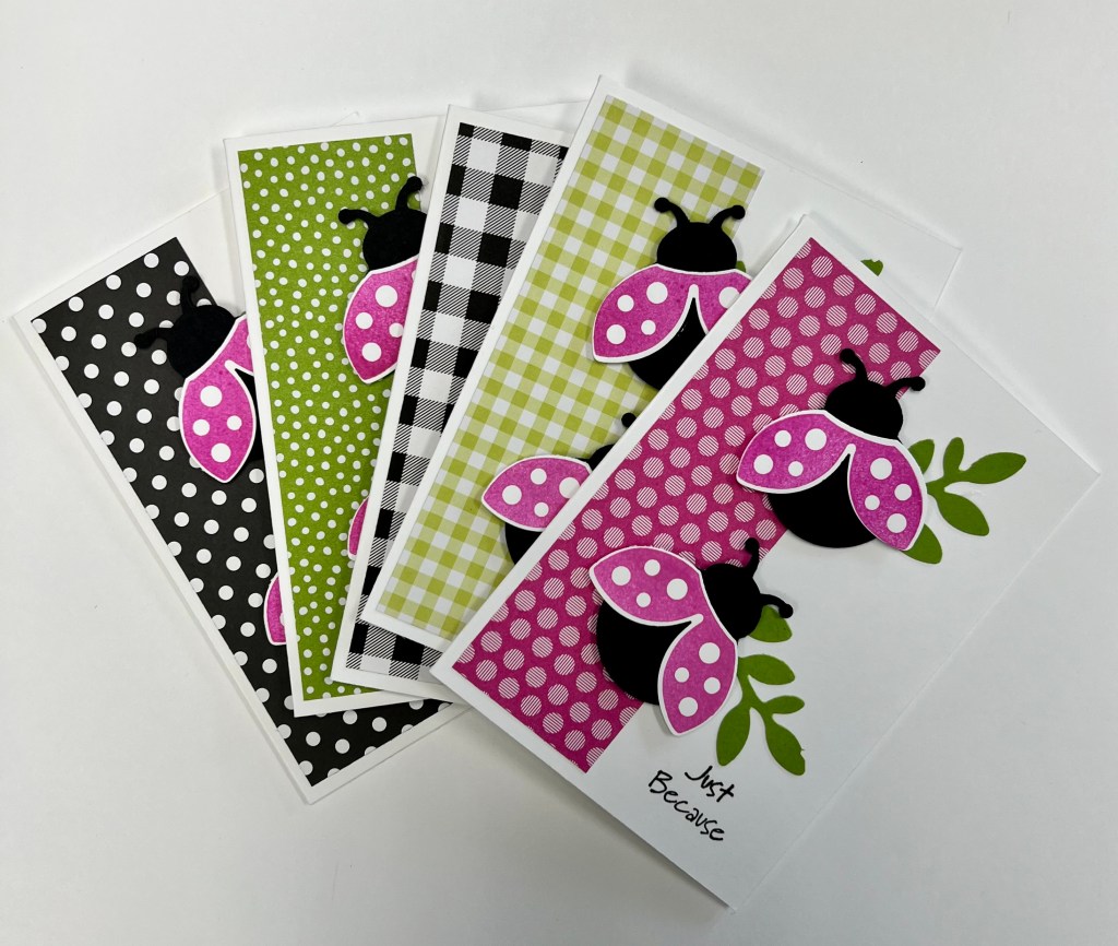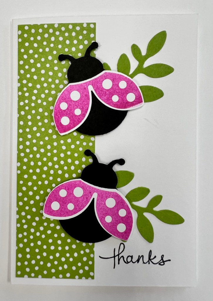 Make a series of sweet notecards with the Hello Ladybug Bundle. I used our notecards and envelopes which make a 3.5″ x 5″ size card. Perfect for a quick note.