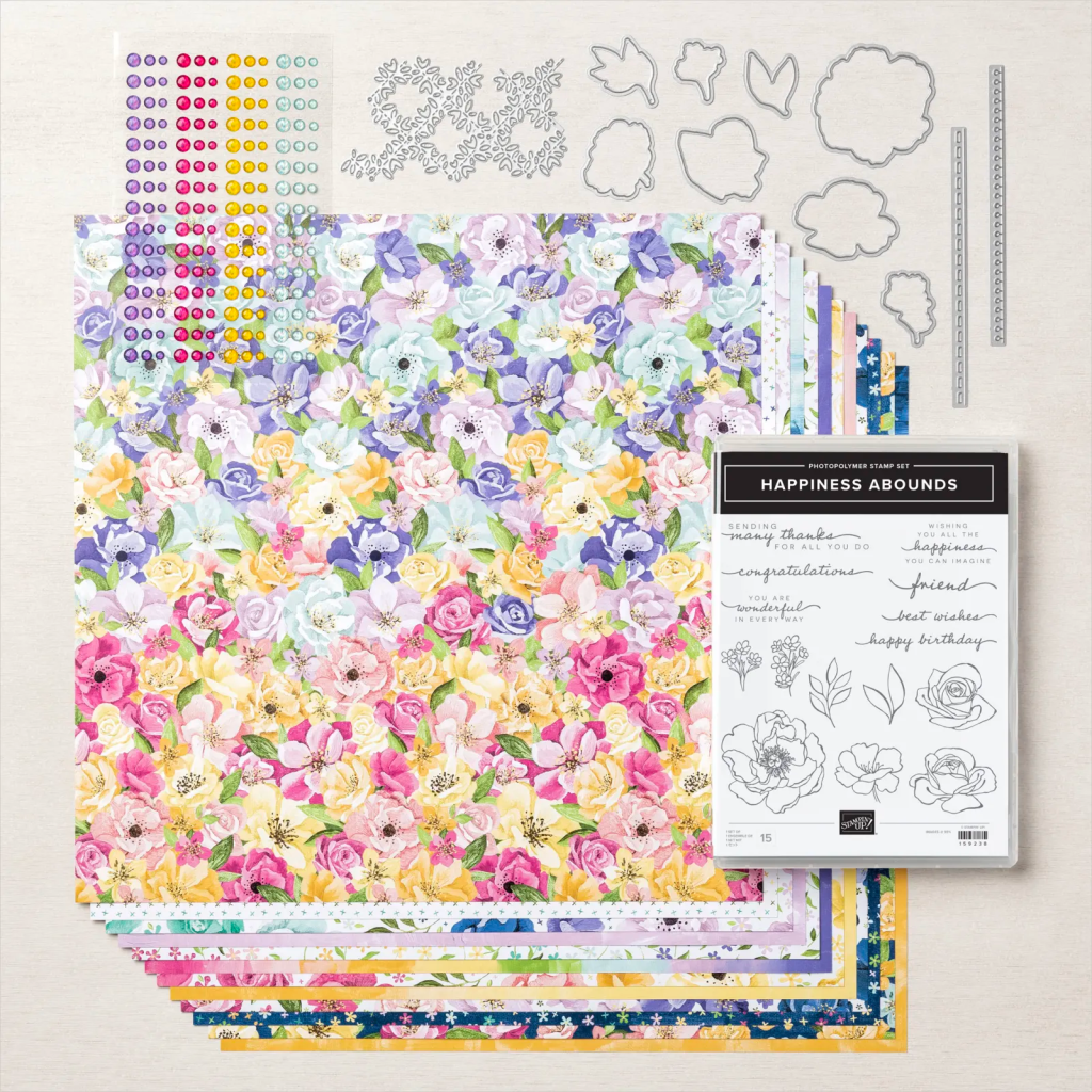 This sweet card features the Hues of Happiness Suite! Save 10% on the stamp set Happiness Abounds and have nearly everything you need to make this cute card!