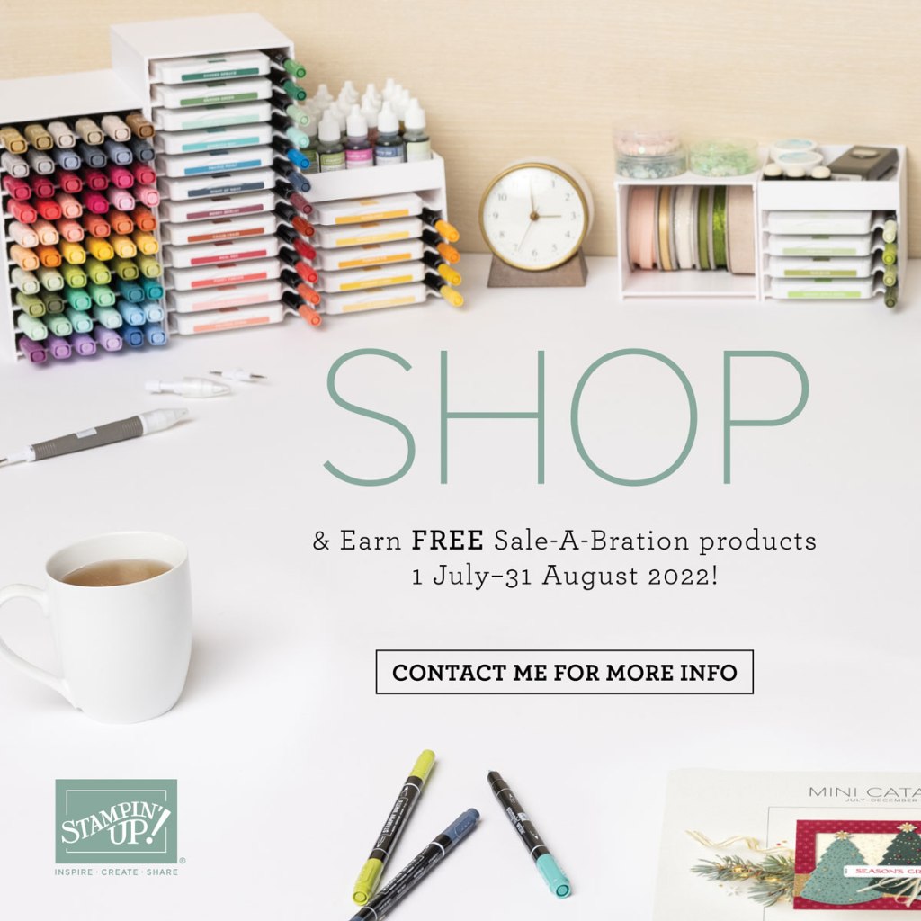 I am so excited about Saleabration!! This is our BEST Stampin Up! promotion of the year! Buy at least $50 in product and receive a FREE Saleabration item of your choice. Did you see the new Saleabration offer?? Check out the additional products you can receive for FREE while shopping now-Aug. 31 here!