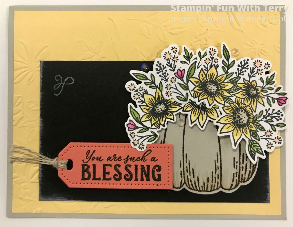 I stamped the bouquet of flowers from the Hello Harvest Bundle on Basic White Cardstock in Black Memento Ink.