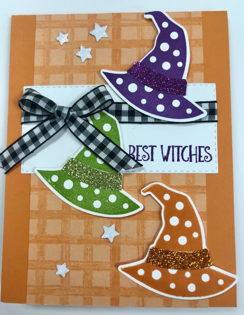 Finally, I embellished with a few white glitter stars punched with the Witch’s Hat Punch.