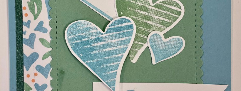I stamped the hearts from the Country Bouquet Stamp Set in Balmy Blue & Mint Macaron ink and cut them out with the Country Bouquet Punch!
