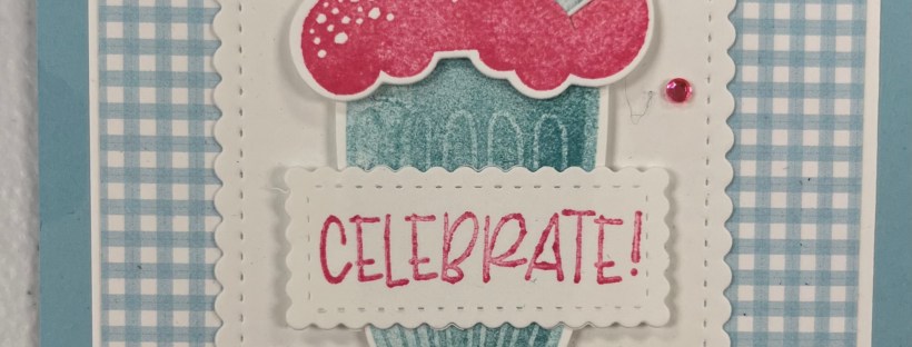 I matted a 3.5″ x 4.5″ piece of Balmy Blue gingham paper on a piece of 4 3/4″ x 3 3/4″ Basic White Cardstock.