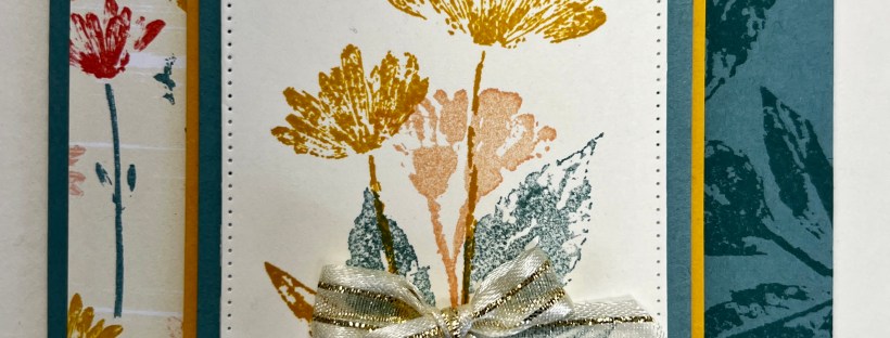 On the front of the card, I adhered a 2.75″ x 5.25″ piece of Inked Botanicals DSP.