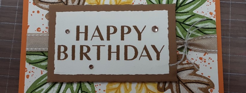 I adhered the piece of Very Vanilla to a piece of 5.5″ x 8.5″ Pumpkin Pie cardstock folded in half.