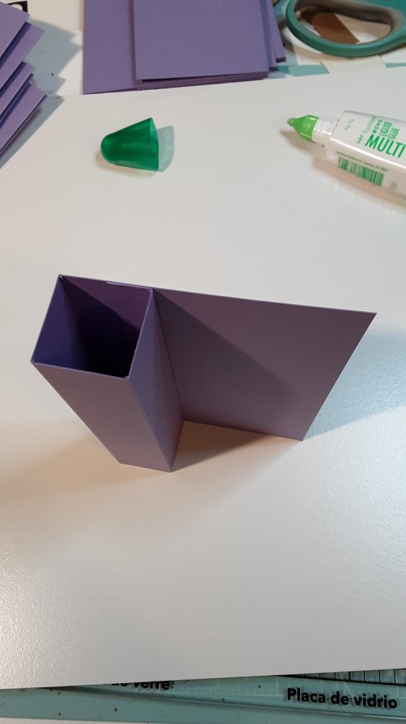 I folded the right side over the glue and pressed to adhere. This makes a square tunnel.