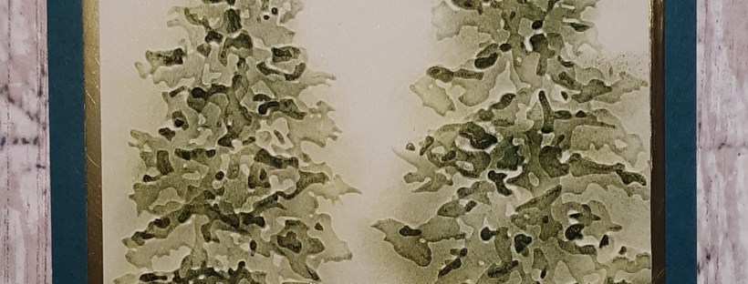 I ran the Basic Beige piece through my Painted Trees 3D Embossing Folder with my Stampin’ Cut & Emboss Machine. With a Sponge Dauber I added some Old Olive ink lightly to the embossed images. The embossing helps variegate the color. When applying the ink, don’t press too hard. Drag the sponge dauber lightly over the image.