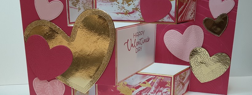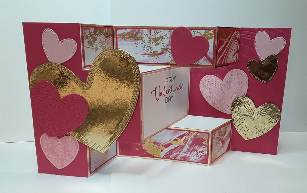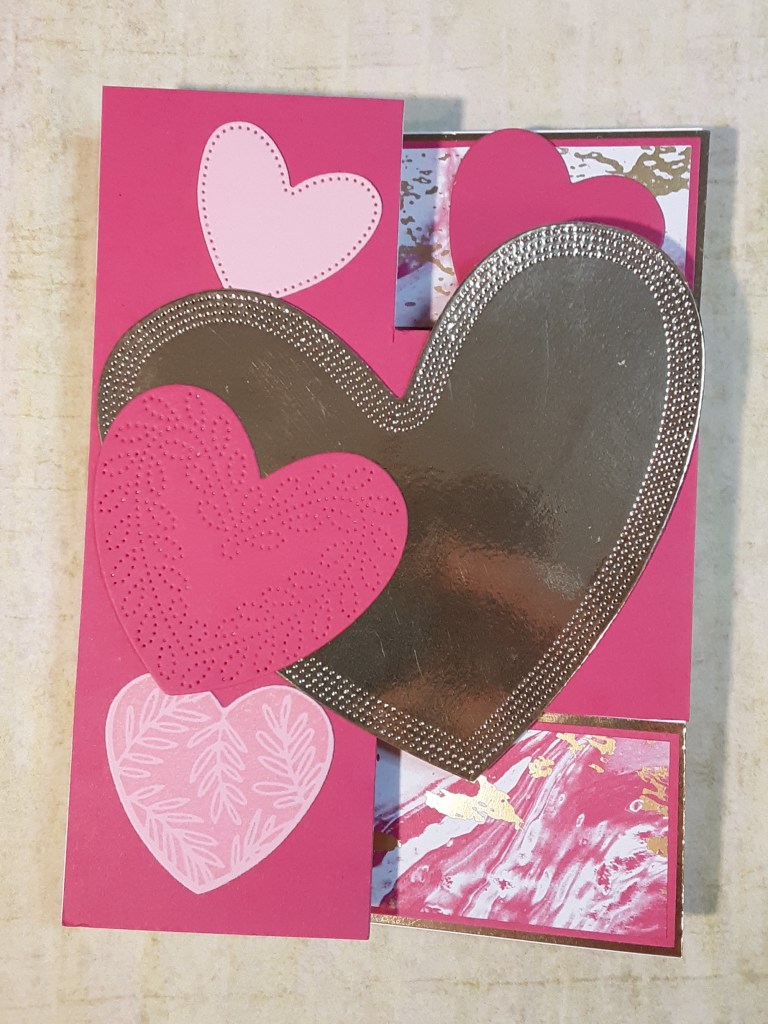Here I am again with another card using the Hearts of Elegance stamp set and dies. I can’t seem to get enough of this set! Marilyn here with a tri-fold step card that is a real stunner.