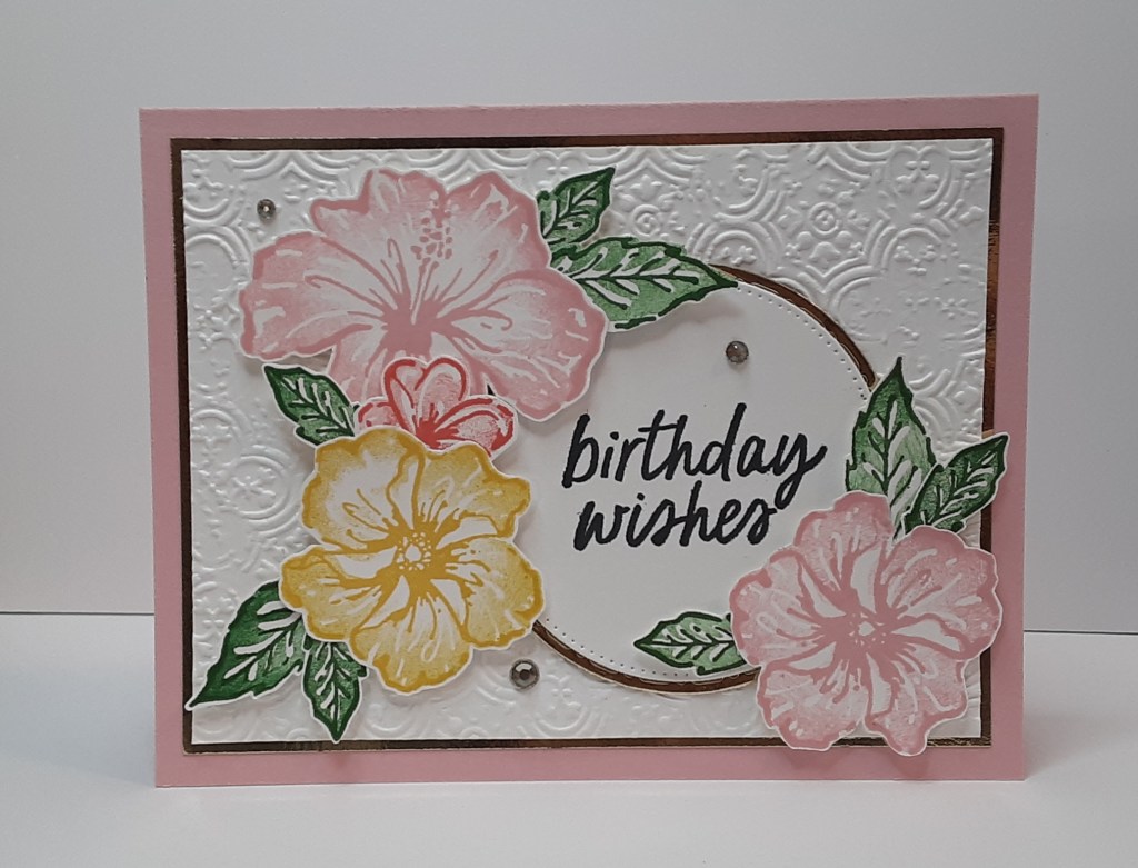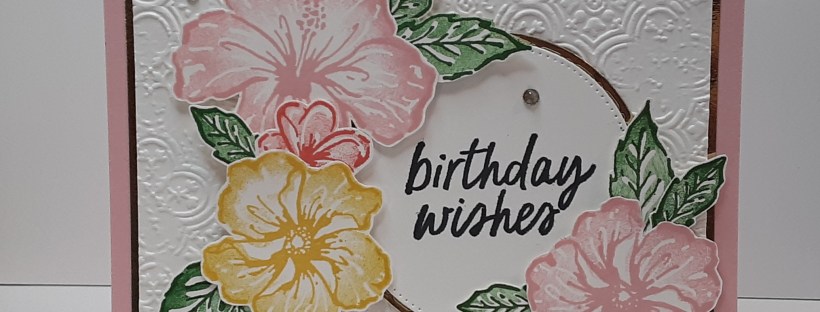 If you haven’t noticed yet, I love this stamp set! It is so pretty and versatile. Marilyn here with another card using the Happy Hibiscus stamp set. I also wanted to remind you that Stampin’ Up! released more free Sale-abration product yesterday. Don’t forget to check it out!