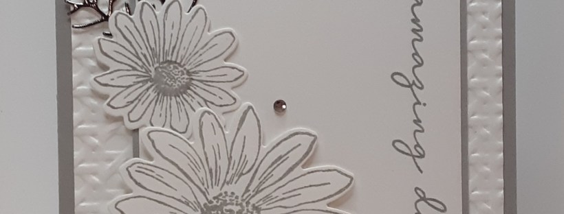 Today I have a simple but stunning card for you. Marilyn here, with a monochromatic color schemed card. I had been wanting to use the Spring Corners stamp set for a while, and this is what I came up with. I am quite pleased with the result. The elegance of the daisies really makes the card stand out.