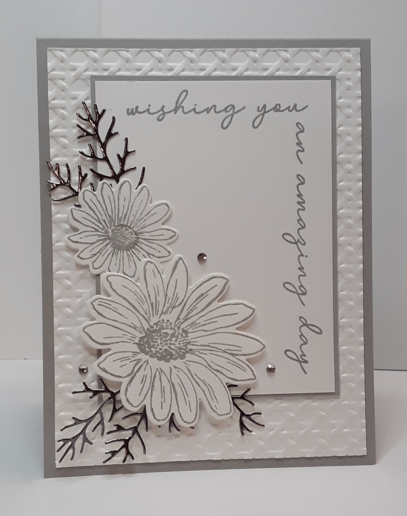 I cut two sprigs from the Cheerful Daisies dies from Silver Foil Sheets.