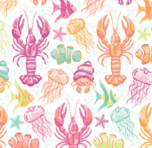 I stamped the outline of the crab image from the Ocean Friends stamp and die bundle with Calypso Coral ink on a scrap piece of Basic White cardstock. I stamped the filler image with Peach Pie ink. I cut the crab out with the coordinating die.