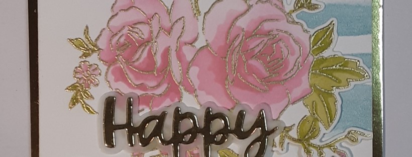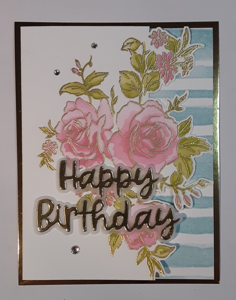 Happy Wednesday! Today I have a card that uses a few fun techniques. This is actually the birthday card I made for Terry’s birthday. Marilyn here with a card that involves stenciling, heat embossing, and partial die cutting. I used the Layers of Beauty bundle, which includes the stamps, dies, and stencils.