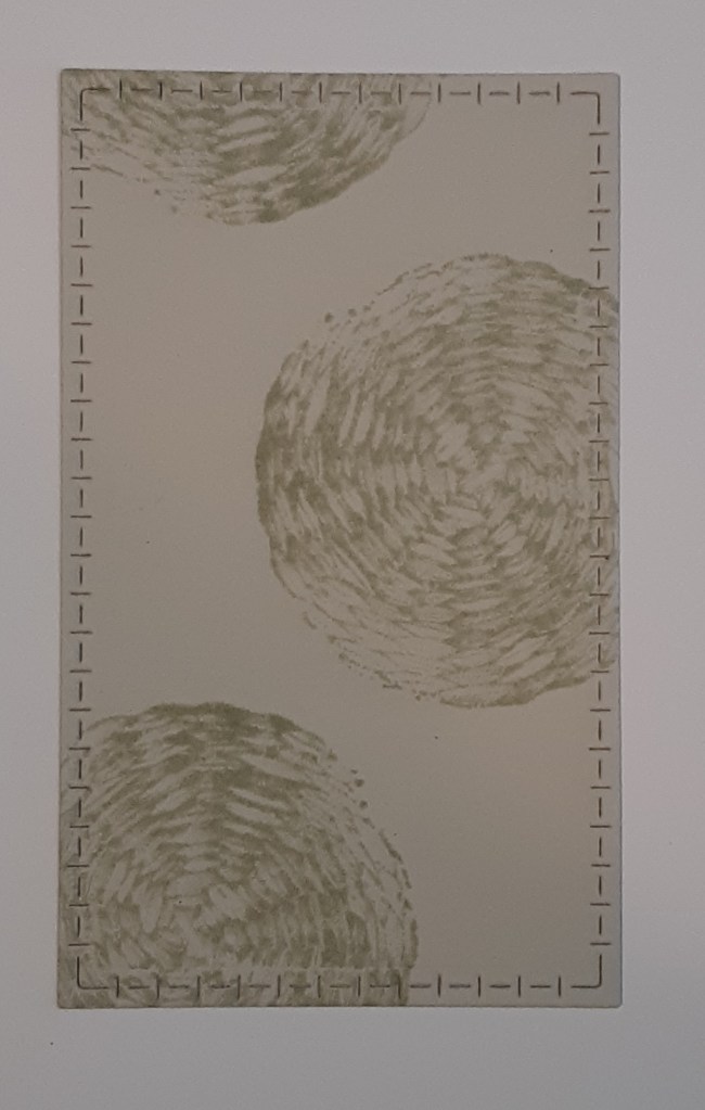 To make the collage part of the card, I stamped the round image from the stamp set in Basic Beige ink. I made sure to go off the edges of the piece.