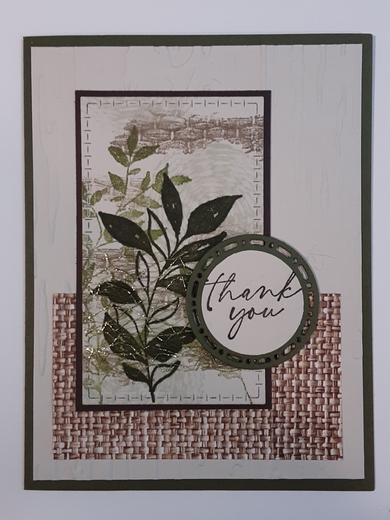 Today I have a simple collage card using the Textured Notes Stamp Set. This set lends itself to making a collage. I have made collage cards before, but I’ve cut the collage into strips. Today I’ll keep it intact. Marilyn here with a quick and easy thank you card.