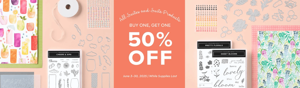 Mark your calendars! The Buy One, Get One 50% Off Suites Sale kicks off June 3 and is already shaping up to be a fan favorite! Stampin’ Up! has a special offer where you can snag 50% off a second suite or suite item. (That’s right—suite savings for days! Well . . . for the month of June, that is.) You can purchase whole suites or products within the suites. Check out my website to see what Stampin’ Up! is offering.