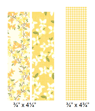 To make the card base, I cut a piece of Daffodil Delight cardstock to 4-1/4″ x 11″ on my Paper Trimmer, scored and folded at 5-1/2″, and burnished with my Bone Folder. I cut a piece of Basic White cardstock to 4″ x 5-1/4″ and ran it through my Eyelet 3D Embossing Folder on my Stampin’ Cut & Emboss Machine. I cut strips of the Floral Delight DSP. See below for the patterns I chose and their dimensions.