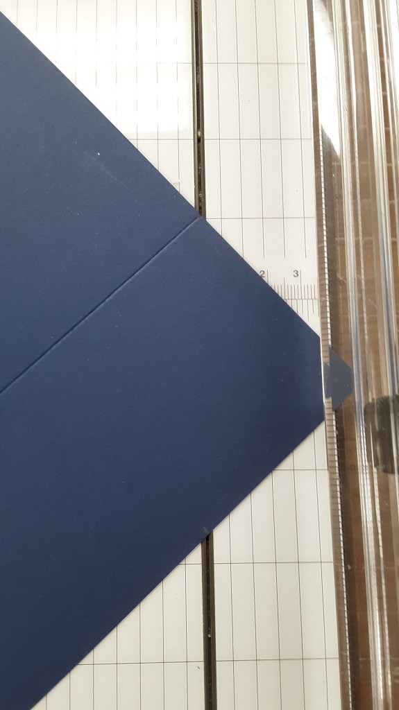 I lined up the card base in my Paper Trimmer so that the fold line and my pencil mark lined up in the track.