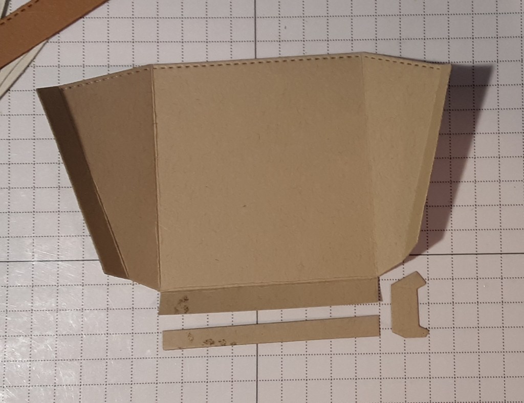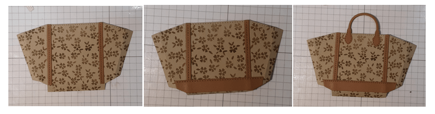 The die leaves score lines on the tote, so I folded them and reinforced the folds with my Bone Folder. I also trimmed the bottom portion of the tote since I didn’t need that part and wanted to reduce bulk. I left a 1/4″ tab.