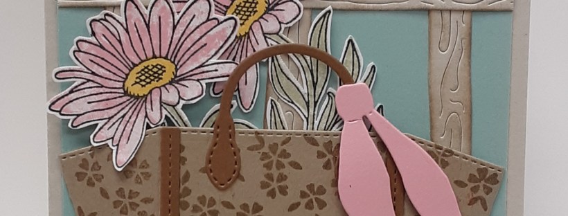Today I have a card using the Notes & Totes bundle. This fun set has dies that create the tote that I used here or it can be modified to create a bag. It has a bunch of pieces, but it comes together pretty easily. It would be great if the flowers were so easily die cut. Now on to the card.