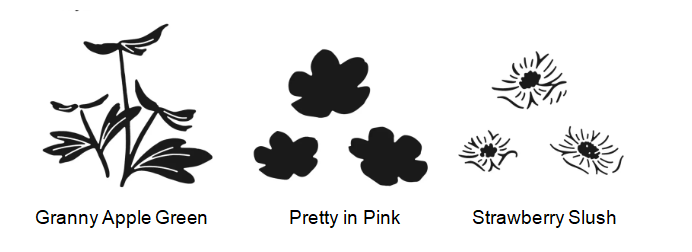 On the piece I cut with Perennial Postage die, I stamped the leaves and stems from Pretty Florals Stamp Set with Granny Apple Green ink. Next, I stamped the solid flower image with Pretty in Pink ink. Lastly, I stamped the detail image in Strawberry Slush ink.