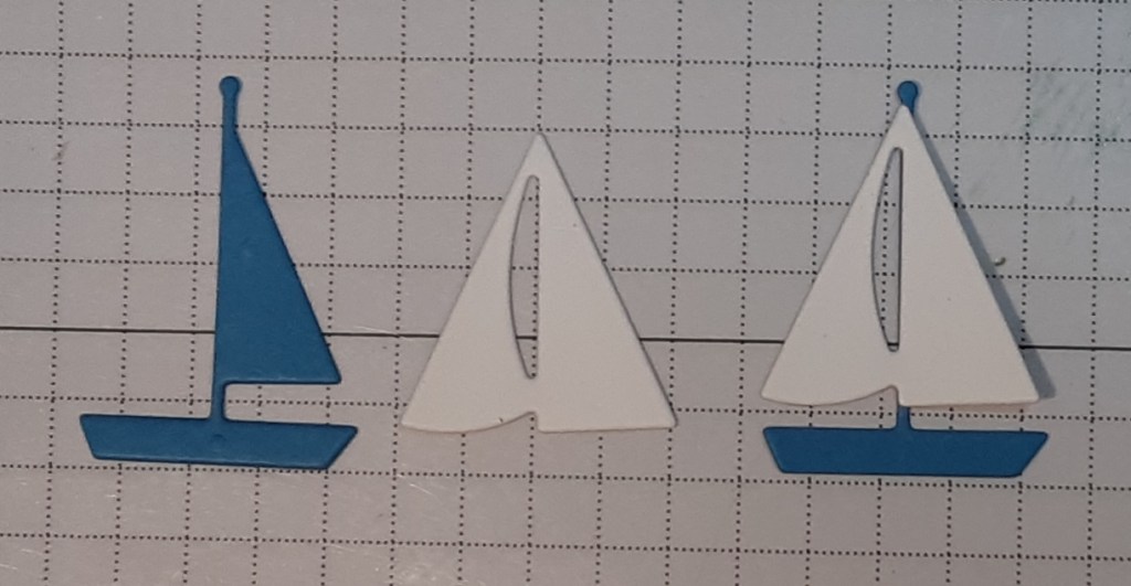 I cut the sails for the sailboat from Sunrise Sailing bundle from Basic White cardstock and the sailboat and mast from Azure Afternoon cardstock. I cut the birds in the set from Basic Black cardstock.