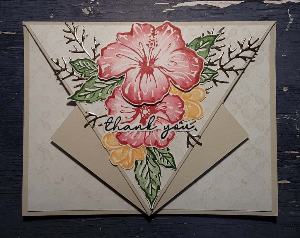 It’s Wednesday and today I have a fun fold card! I’ve done this fold before, but it is so easy and the results are so pretty, that I decided to do it again. As a reminder, don’t forget to sign up for Stampin’ Up’s World Card Making Day on October 4. It should be fun to see what clever things Stampin’ Up! comes up with. Now on to today’s card.