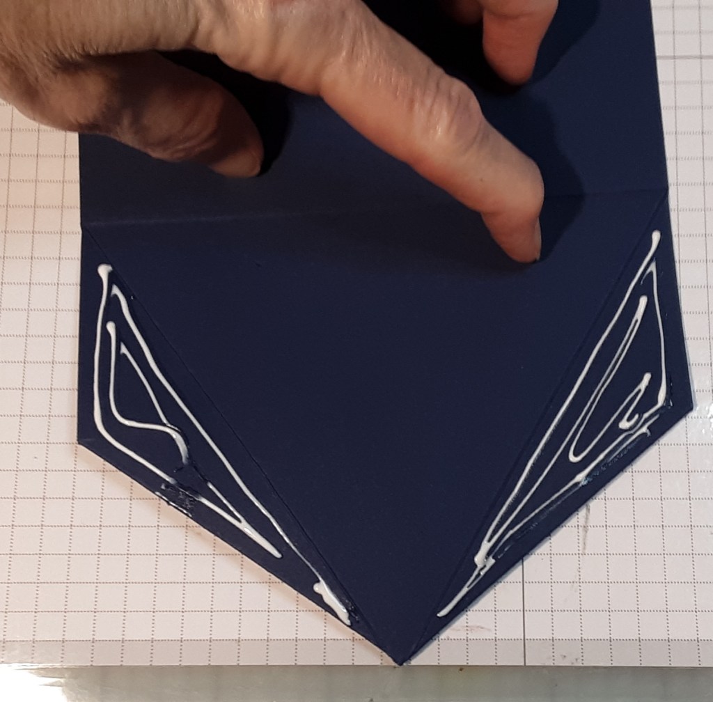 From the inside of the card, I applied glue (Multipurpose Liquid Glue. You could also use Stampin’ Seal) to the flap and adhered this part to the inside.