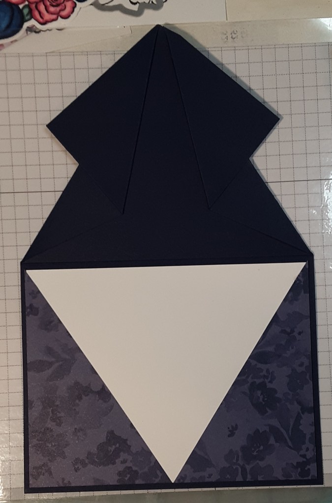 I folded the longer fold in toward the card. (Mountain) I folded the shorter fold out. I burnished both folds with my bone folder.