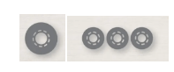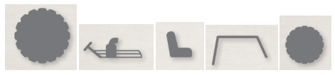 I adhered the gray hubs to the black tires. I adhered the larger tire to the left side of the tractor body. I glued the smaller tire to the right side. I added the fenders. I repeated this with the trailer. I added the pumpkins to the trailer.