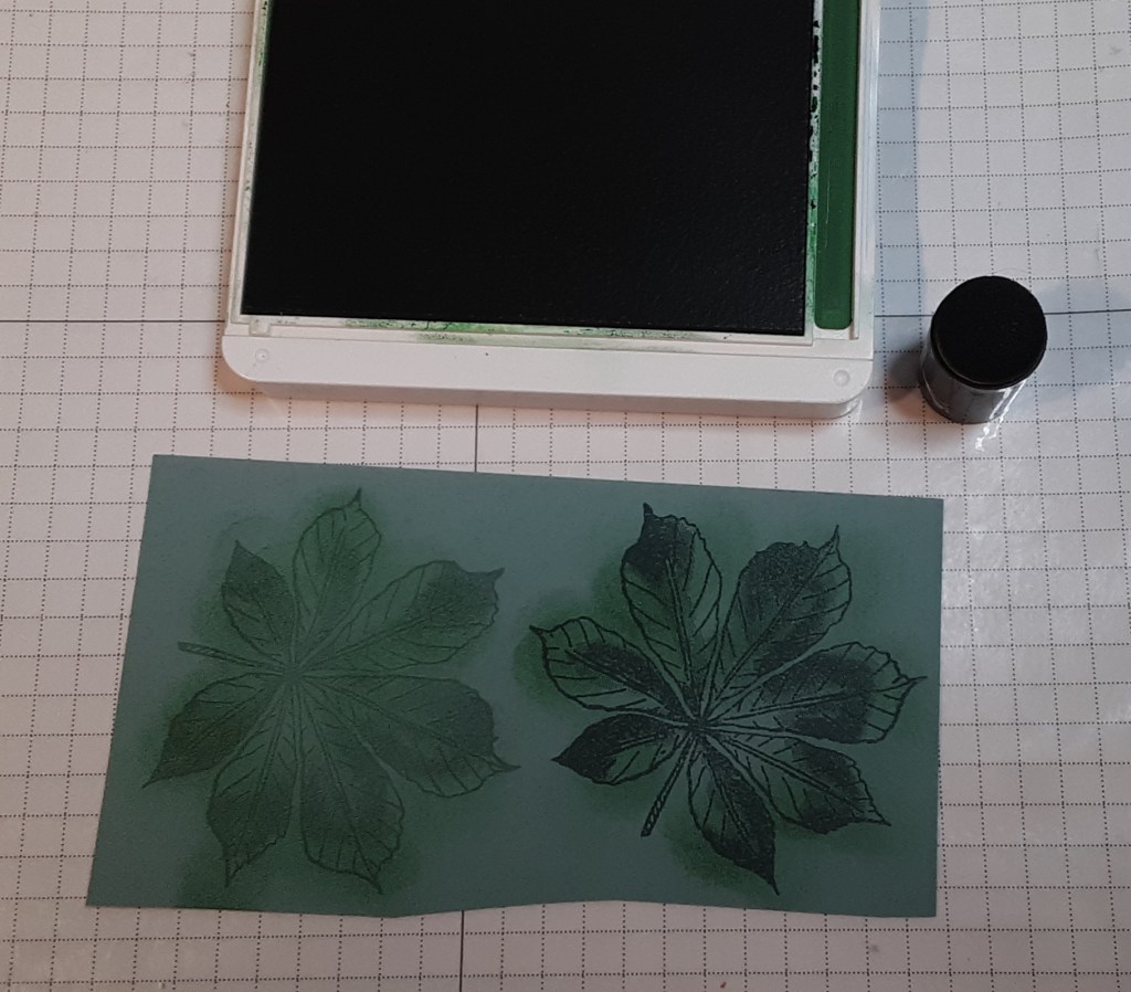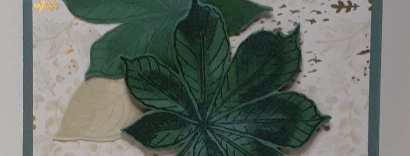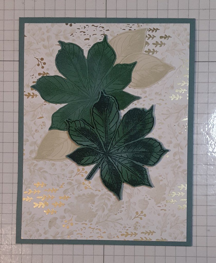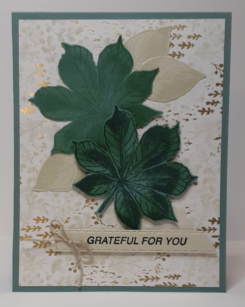 I stamped the detailed chestnut leaf from Artistic Leaves stamp set with Lost Lagoon ink on Lost Lagoon cardstock.