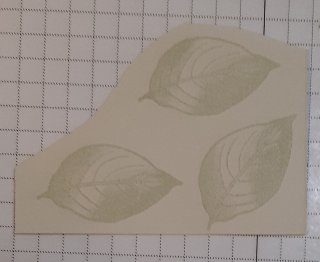 I stamped the small leaf from the stamp set with Basic Beige ink on Basic Beige cardstock three times. I fussy cut these out, too.