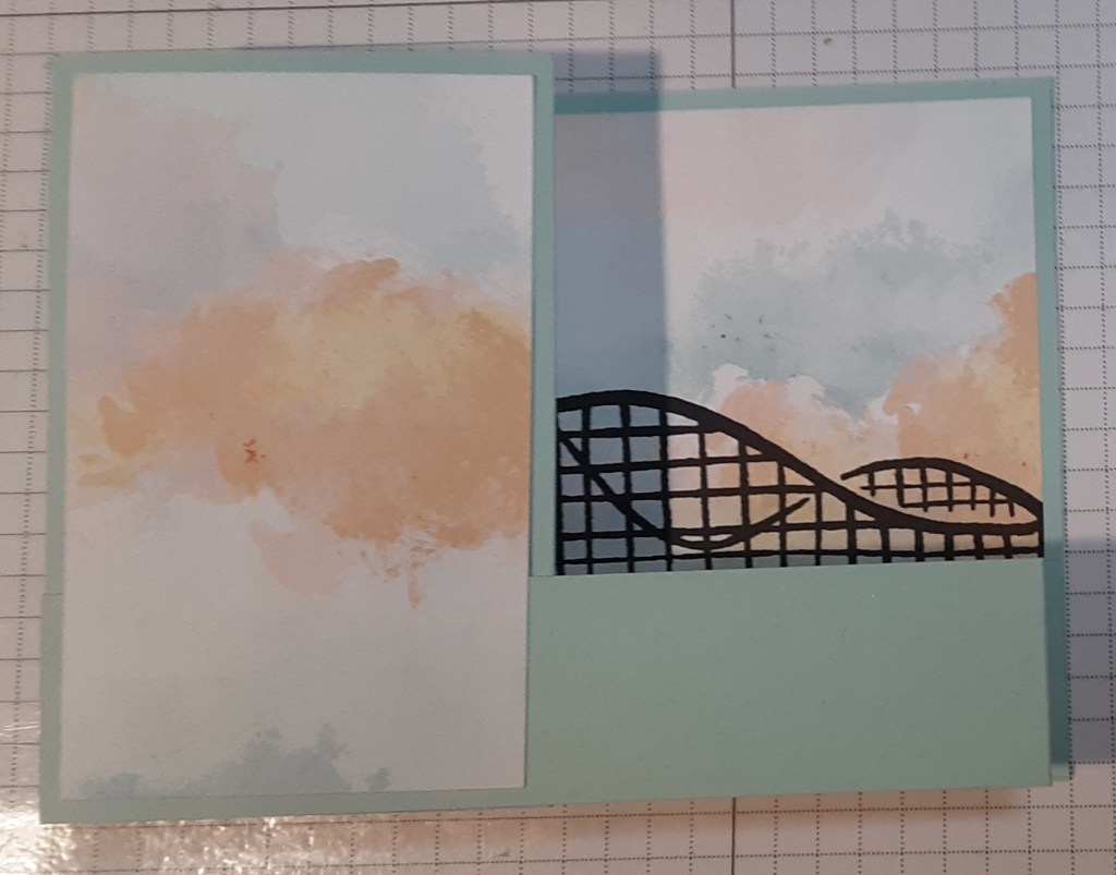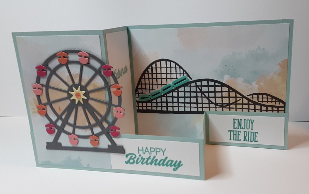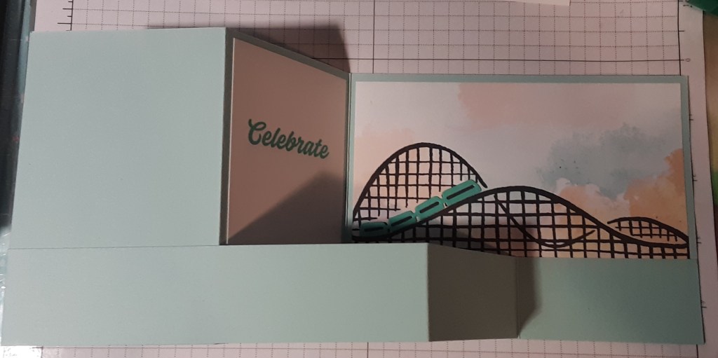 I stamped the Roller Coaster with Momento Tuxedo Black ink on the DSP panel. I also adhered the coaster cars to the track using my favorite adhesive (Multipurpose Liquid Glue or Stampin’ Seal).