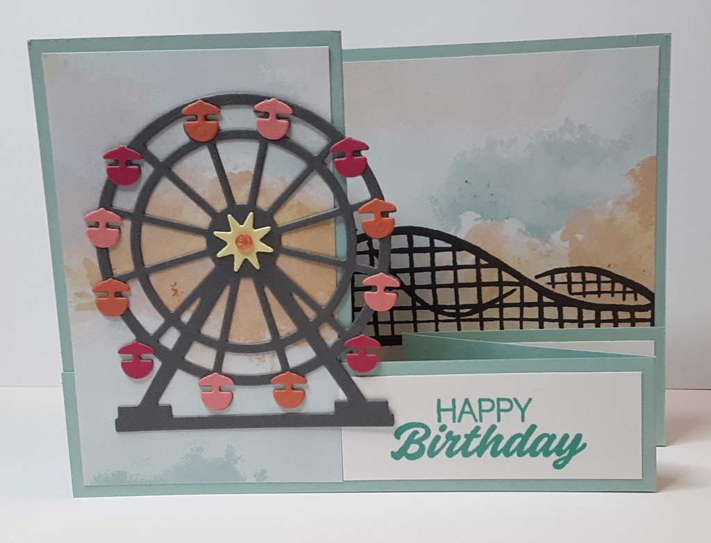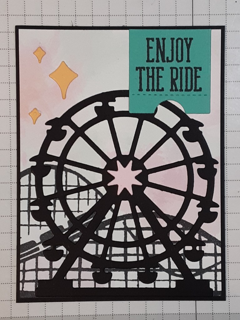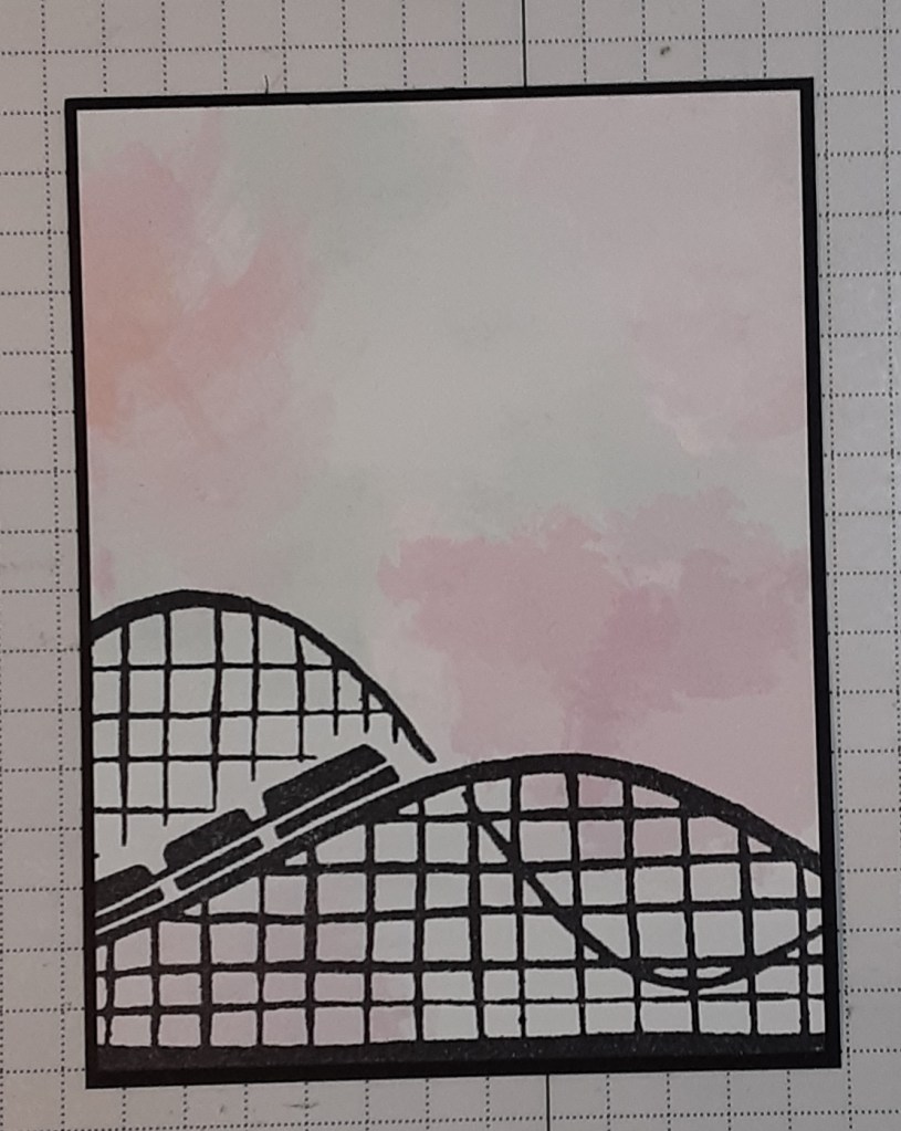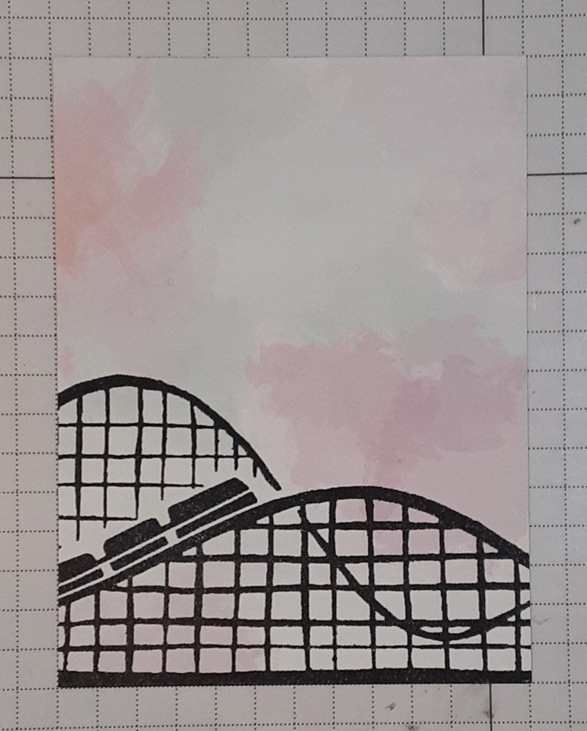 I stamped the roller coaster from Boardwalk Fun bundle with Momento Tuxedo Black ink.