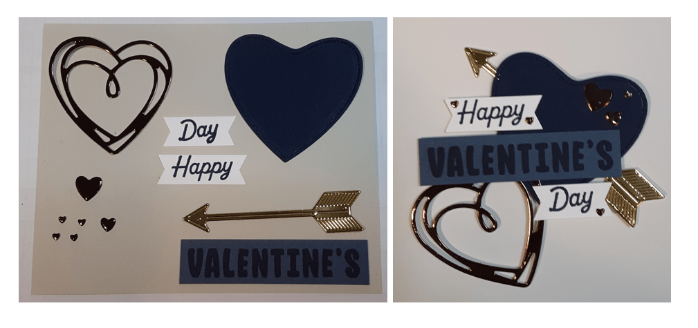 I used the dies from Endless Love bundle to cut some pieces on my Stampin’ Cut & Emboss Machine. I die cut the heart with the loop from Night of Navy cardstock. I trimmed off the loop. I cut the scribble heart and the small hearts from Earthen Tone Metallic Specialty Paper. I die cut the larger arrow from Gold Foil Sheets. I assembled my pieces and adhered them together with a combination of adhesives, Multipurpose Liquid Glue and Stampin’ Seal.