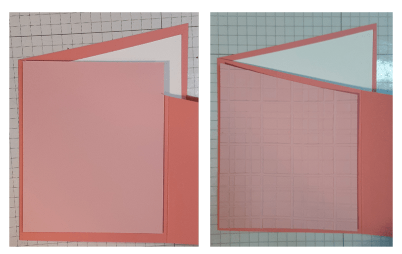 I measured a piece of Pretty in Pink cardstock for the middle section on the other side of the card base. I ran this piece through the Forever Plaid Embossing Folder on my Stampin’ Cut & Emboss Machine.