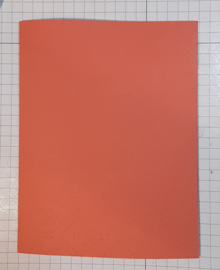 Now on to the card. To make the card base, I cut a piece of Calypso Coral cardstock to 4¼” x 11” on my Paper Trimmer, scored and folded at 5½”, and burnished with my Bone Folder. This card base made it easier to run the front of my card through the Beautiful Pattern Embossing Folder on my Stampin’ Cut & Emboss Machine. If you prefer a sturdier card front, cut another piece of Calypso Coral cardstock to 4⅛” x 5⅜” and run this piece through the embossing folder instead of the card base. Adhere the embossed piece to the card front with your favorite adhesive (Multipurpose Liquid Glue or Stampin’ Seal). Even though this embossing folder is a 3D one, the pattern is not as deep as other 3D embossing folders and gives a subtle texture to the cardstock.