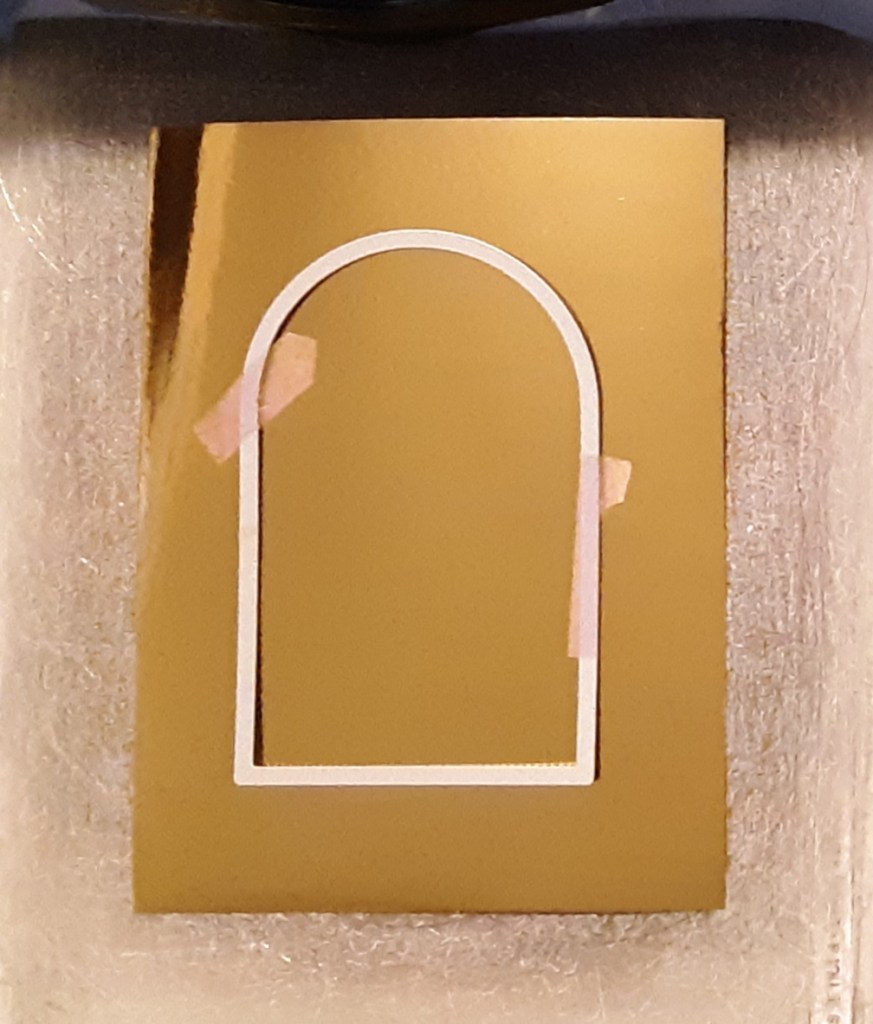 I die cut using the Everyday Arches dies, an arch (2¼” base) from the center of my Gold Foil piece. It seemed a shame to use so much of it and only have a little show. No one will ever know I cut the piece from the middle.